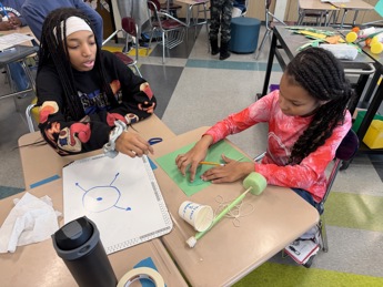 Students engage in wind turbine design.